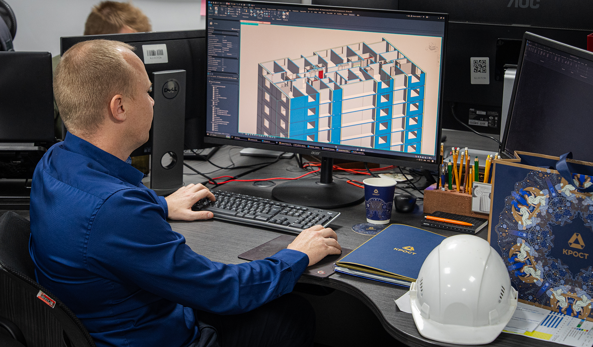 Современные цифровые технологии кардинально меняют подход к проектированию. Сергей Иванов, BIM специалист концерна «КРОСТ», раскрывает потенциал инновационных методов: «3D моделирование даёт уникальную возможность с абсолютной точностью воплотить замысел архитектора и наглядно представить его всем участникам процесса. С детства увлекаясь конструированием, я нашёл своё призвание в автоматизации проектирования — в частности, в разработке алгоритмов раскладки арматурных сеток внутри железобетонных конструкций. Плоское проектирование постепенно уходит в прошлое: цифровые методы не только ускоряют процесс, но и поднимают качество проектирования на новую высоту».