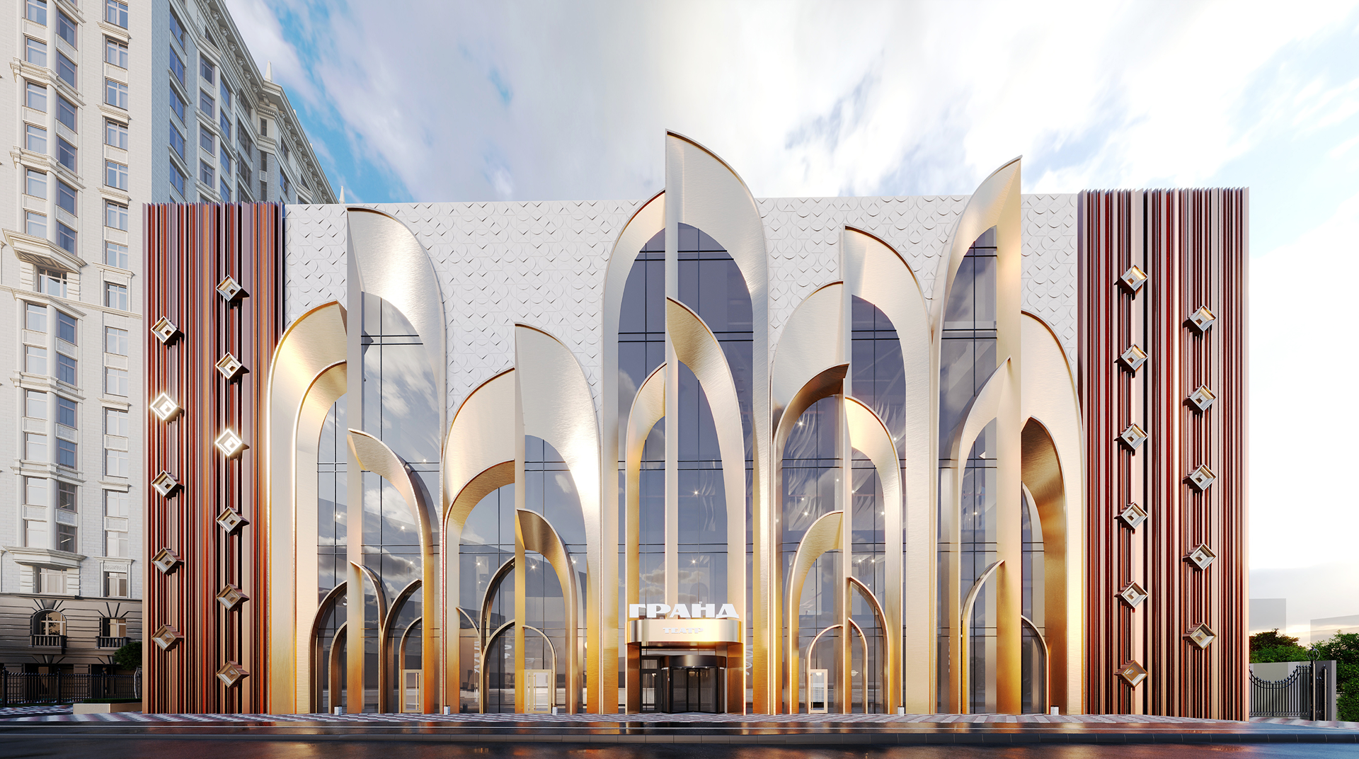 Архитекторы предложили современное прочтение театрального здания со сложной, современной «начинкой», в виде большого занавеса фактически в центре жилого массива, вдохновившись театральным искусством. Фасад украшает узор ритмичных «бемолей», отражающих эмоции зрителей и актеров, накал страстей, который приоткрывает нам традиционный театральный занавес.