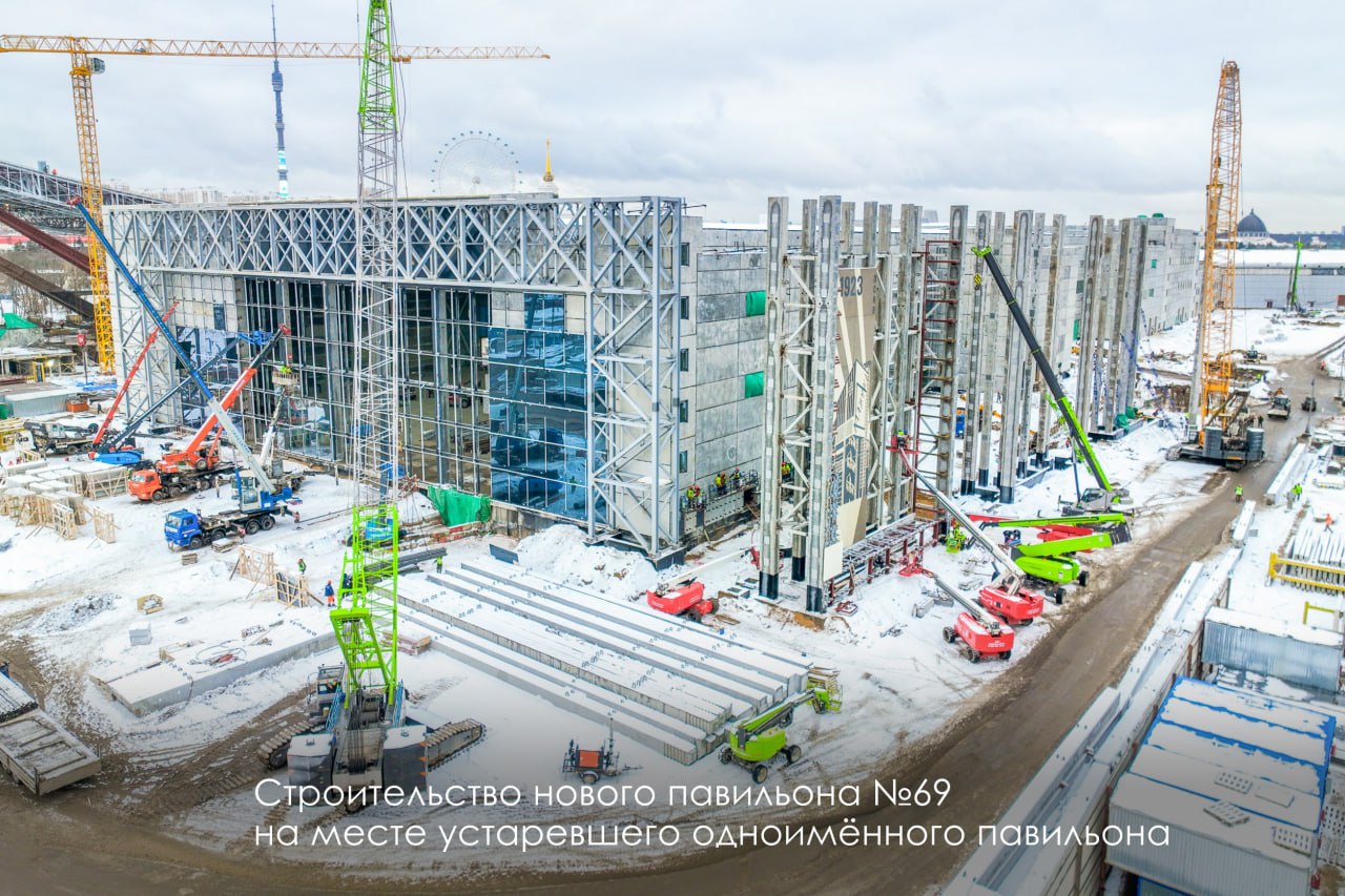 Строительство крупнейшего в Москве конгрессно‑выставочного центра концерн «КРОСТ» ведет с лета 2024 года, когда состоялось торжественная церемония заложения капсулы времени. В настоящее время на проекте выполнено 50 % от общего объёма работ: на объектах задействованы около 2 200 человек и более 100 единиц спецтехники. Комплекс площадью более 200 тыс. кв. м объединит четыре здания — знаменитый «Монреальский» павильон № 70, выставочный павильон № 75, а также два новых монументальных объекта на месте устаревших павильонов № 20 (1967 года постройки) и № 69 (1986 года постройки). Основной этап работ планируется завершить в декабре 2026 года.