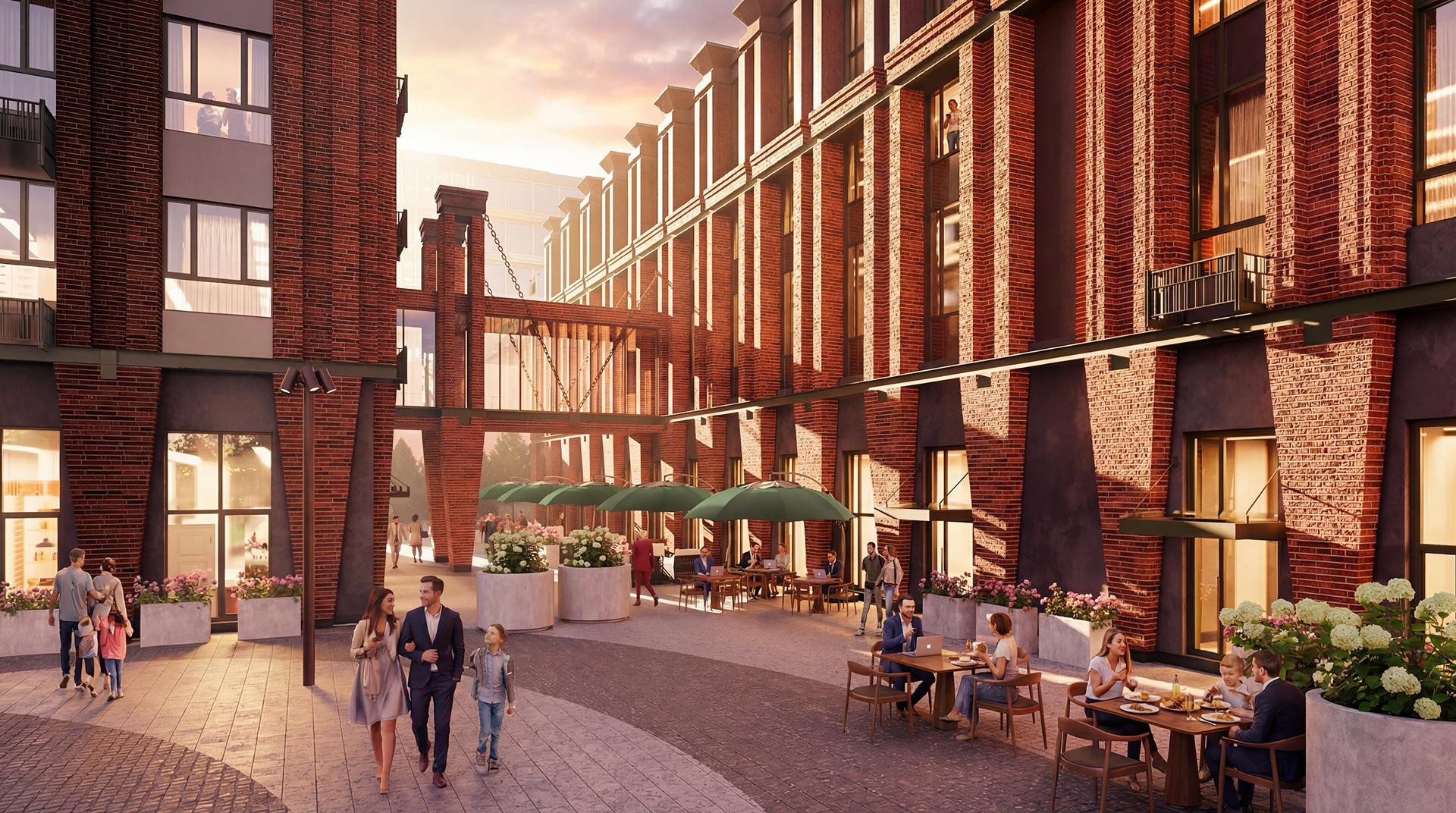 В это же время, архитектура отсылает к эстетике города на Неве — Санкт-Петербурга. Так на фасадах появляется кирпич, фактурой своей напоминающий брусчатку петербургских набережных.