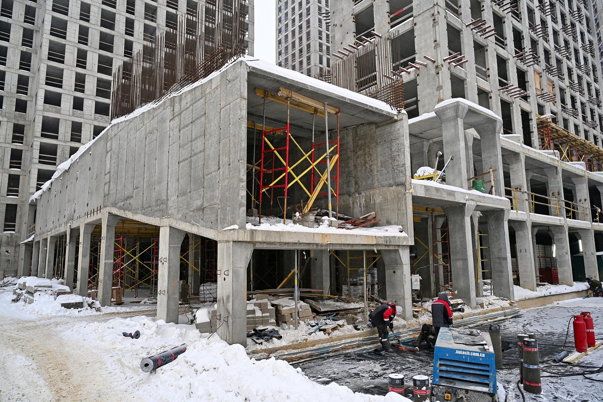Особенно впечатляет 1-й корпус, чей силуэт поднялся до отметки в 22 этажа — настоящая доминанта формирующегося силуэта квартала.
