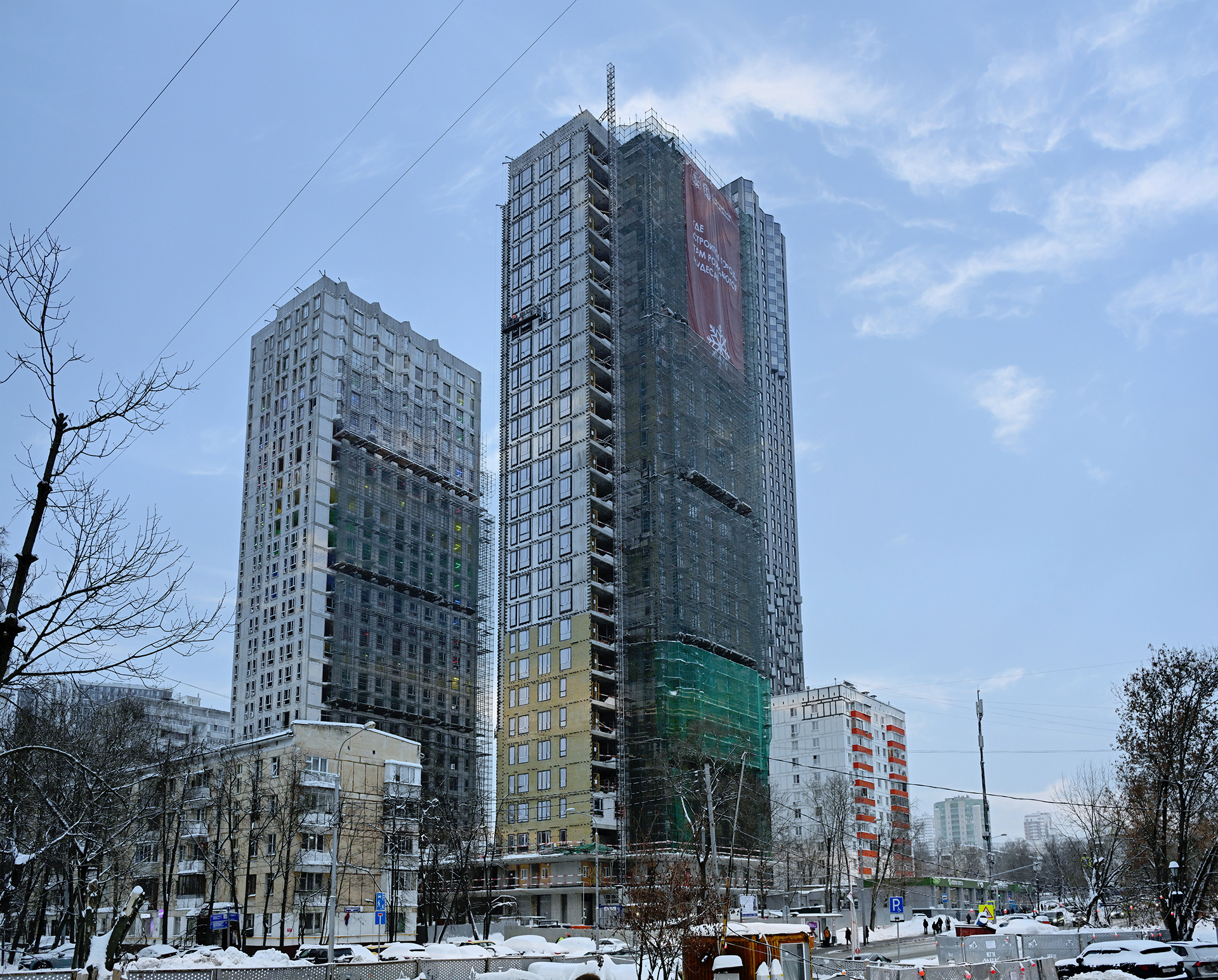 Основными задачами на февраль станут полное закрытие теплового контура в корпусе 9.2, начало облицовки фасада корпуса 9.1 и завершение черновых работ на показательном этаже.