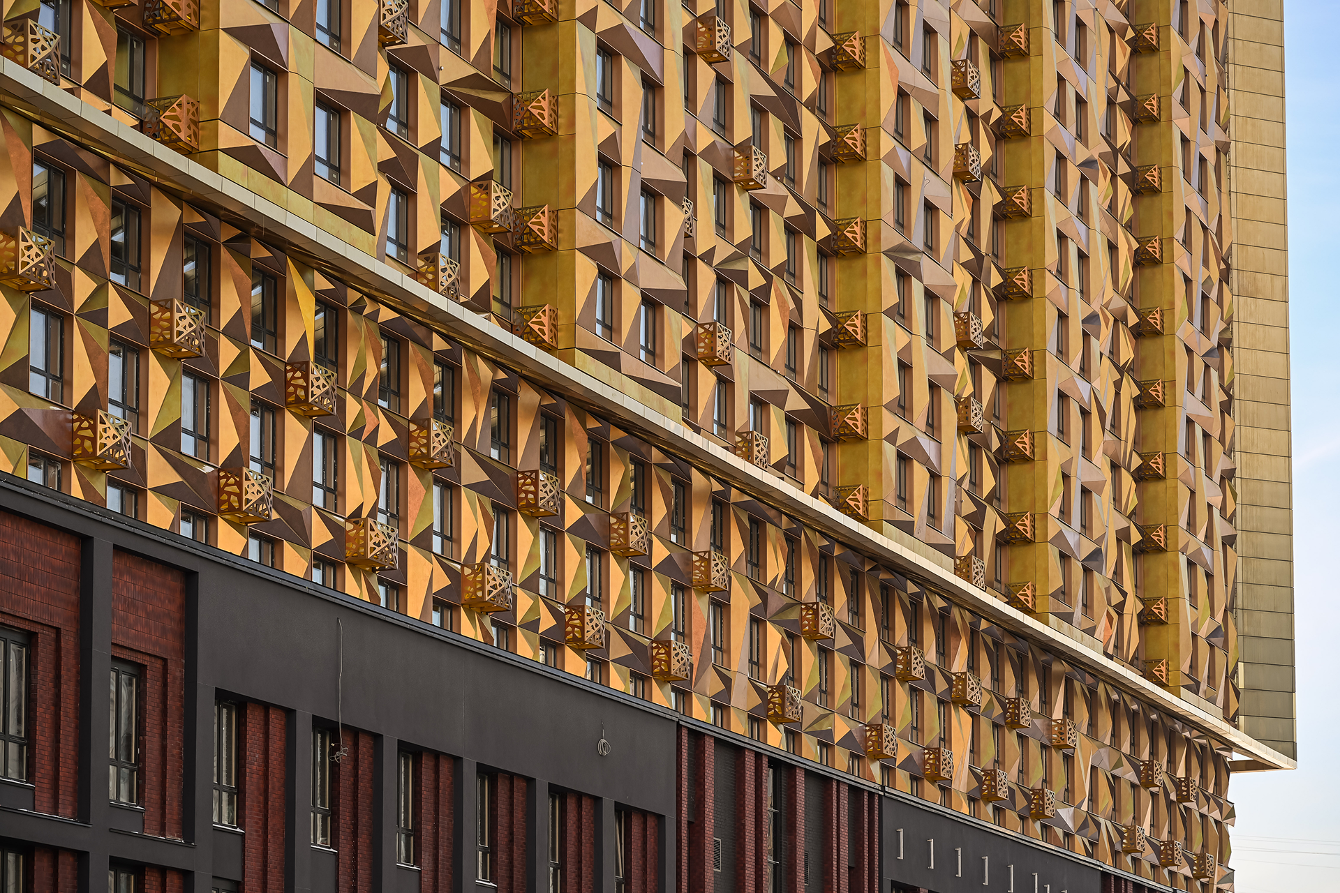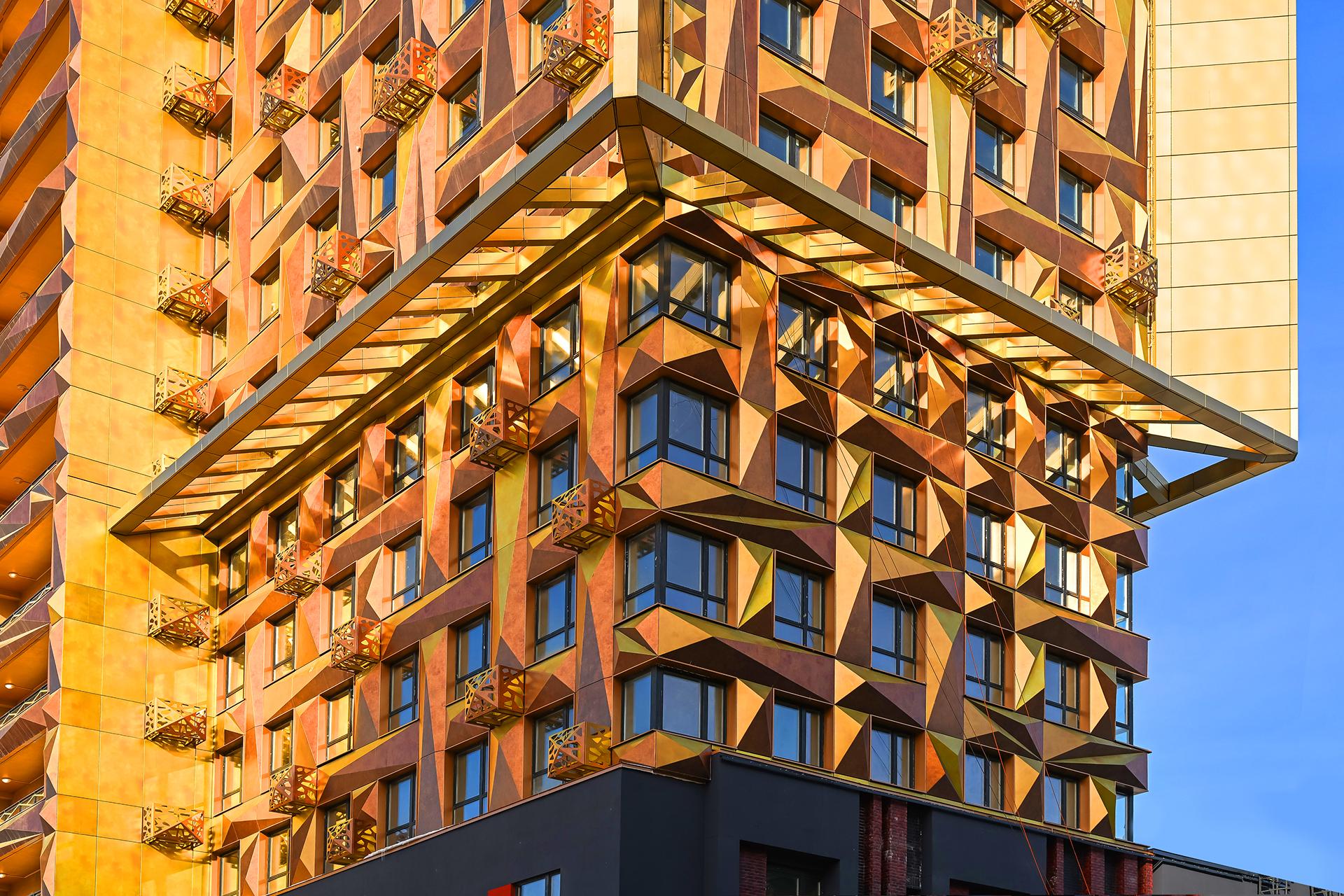 Фасад Дома «МАЛЕВИЧ» представляет собой полотно площадью 16 500 кв.м, беспрецедентное для Москвы. Это сложнейший проект, для реализации которого были привлечены лучшие архитекторы, специалисты по архитектурным фасадам и инженеры.